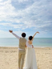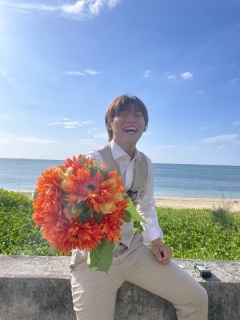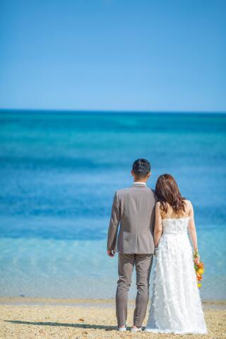 沖縄のロケーションフォトならではの、青い空と海のコントラストが美しい、爽やかな写真の仕上がりになりました。