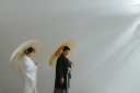 スタジオでの撮影は、白を基調とした背景で行います。お二人の美しい表情や仕草が際立ちます。