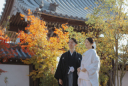 紅葉輝く景色を背景に、あくまでお二人が際立つ撮り方で。