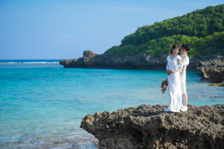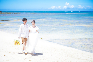 自分が思っていたエメラルドブルーの海がとっても綺麗に写っていたので嬉しかったです。自分たちで写真を撮るよりこんなにも表情が豊かに撮れたのはカメラマンさんのお陰です。どの写真もポーズやイメージを指示してくださったおかげで素敵な写真になりました。笑顔がたくさん撮れていてよかったです。