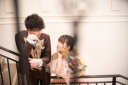 撮影のラストは2階の大階段上からシャンデリアの煌めきと一緒に撮影を♪