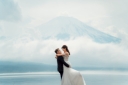 まっすぐに伸びる道の先に、そびえる富士山。ふたりだけの未来へと一歩を踏み出す瞬間を写真に残します♪