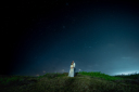 可愛いライトのサインの前で♪白のワンピースとヘアアクセがよく似合います^^
