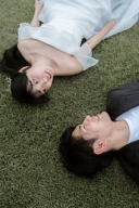 あえての後ろ姿も大人っぽく印象的な一枚に。顔が見えなくても幸せな未来を見つめているような二人の空気感が伝わるベストショットになりますね^^