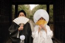 一面に広がる菜の花の中で楽しそうにポーズするお二人。空とも相まって素敵なワンカットですね♪