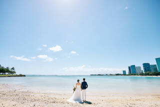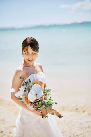 エメラルドグリーンのビーチ、緑豊かな自然、チャペル。どこを切り取っても絵になるロケーションで、おふたりの「やりたい」を叶える沖縄フォトウエディング