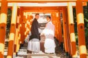 和装にぴったりの赤い鳥居。並んで歩く後ろ姿がとても素敵ですね。