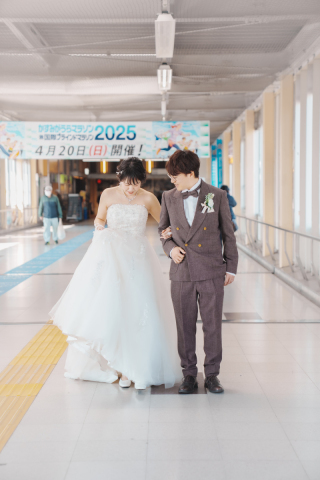 事前にどんな感じで撮影したいか、LINEでイメージ写真をいくつか送り、当日もその雰囲気に近いかたちで撮影してくれました。 また、写真が苦手な彼も自然に写れるように声かけや お話をしてくださり、そのお陰で二人とも笑顔がいっぱいの写真を残すことができました。