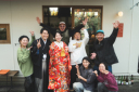 片倉写真事務所 北山スタジオ 花嫁を外から撮影。和やかな一日が始まります。