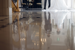 天井の高いチャペルで、上からの撮影をしてくださいました。自分たちの目線からも、ゲスト側の目線からも見れない景色の写真を残してもらい、大満足です。また、天気が良く、自然光を生かしたガーデンの写真や、青空を入れたチャペルの写真や、床が鏡の様になっていて、床に映っている二人の写真等、プロの方だからこそ撮れるんだろうなと思う写真でいっぱいでした。