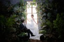 繊細なベールが美しいふたりを包むロマンティックな空間。