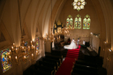 お持ち込み頂いた指輪と共に。チャーチ側面のステンドグラスが笑顔のご新婦様を引き立てます