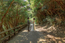 夕方にはお衣装をチェンジして夕日が浦海岸に移動しました。ベールをかぶったおふたりが、夕陽に包まれる瞬間。波音と柔らかな光が特別な一日をやさしく締めくくります。