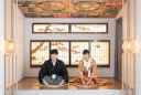 ストーンの背景に映える和装姿