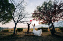 ブーケを持って寄り添うワンシーン