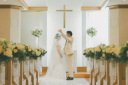 和装からウェディングドレスにお色直しを行い、チャペルでの撮影に入りました*まずは、腕を組んでカチッとフォーマルなポージングからスタートです^^