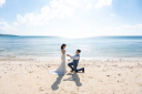 宮古ブルーの海と白い砂浜。爽やかな笑顔が弾ける1枚