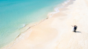 青い海と白い砂浜に映える、サングラス姿の遊び心あふれるおふたり