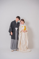 白無垢と紋付袴で、おめでたい雰囲気いっぱいのふたり。セルフ撮影なら「せーの!」で息を合わせる瞬間もイベントに。画面いっぱいに幸せなオーラを詰め込みました。