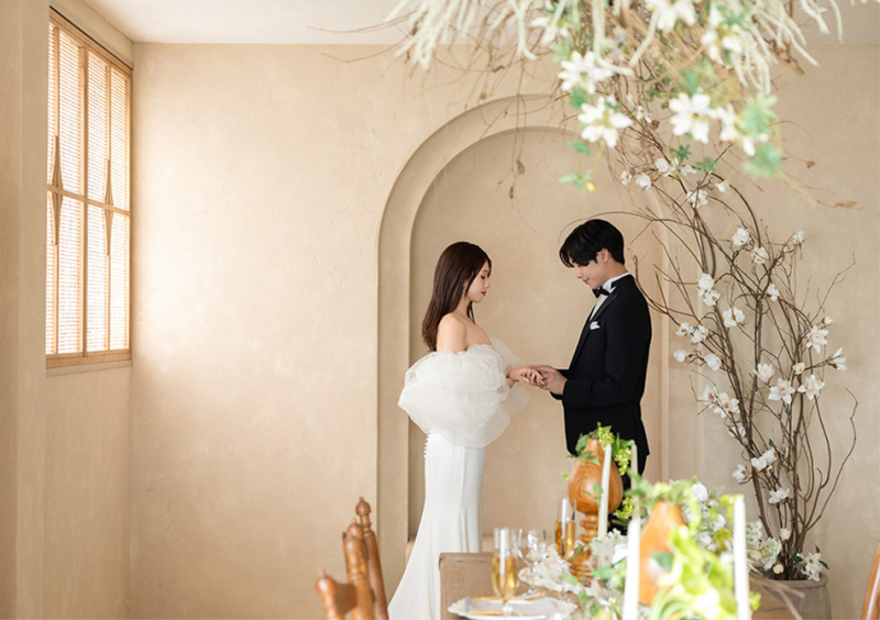 私たちは、写真をただ「撮る」のではなく、あなたの人生の節目を丁寧に仕立てる”クチュール”のように捉えています。ミニマルで洗練されたスタジオで、今を生きるタイムレスな美しさを残します。~写真の先に、結ばれる時間がある~