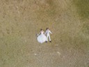 青空の下、風に乗ってキラキラと輝くシャボン玉。ドローンで捉えた無数の泡は、お二人を包む天然のフィルターのように海辺を彩り、無邪気で幸せ溢れる瞬間を演出しました。