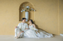 やわらかな白い壁を背景に、衣装や表情がより美しく映えるスタジオフォト。シンプルだからこそ、おふたりらしさを引き立てる洗練された一枚を残せます。